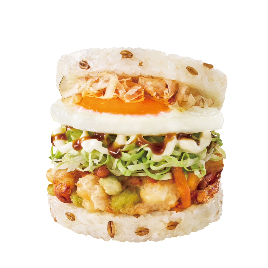 「月見大阪燒珍珠堡」售價115元,嚴選鮮蝦、魷魚及鮮甜蔬菜高溫酥炸成海鮮天婦羅,放在Q彈超級大麥米飯上,鋪滿爽口高麗菜絲、夾入象徵滿月的香煎元氣蛋,澆淋上美乃滋及日本進口道地大阪燒醬,最後以鮮香十足的柴魚片提味。大口咬下,濃濃日式風味撲鼻,豐富的餡料與醬料交織,每口都嚐得到大洋鮮味。除原味外,此次也同步推出山葵風味「月見大阪燒珍珠堡」,山葵美乃滋的微嗆辣滋味畫龍點睛,更賦予米漢堡獨特的清爽靈魂,令人回味無窮。