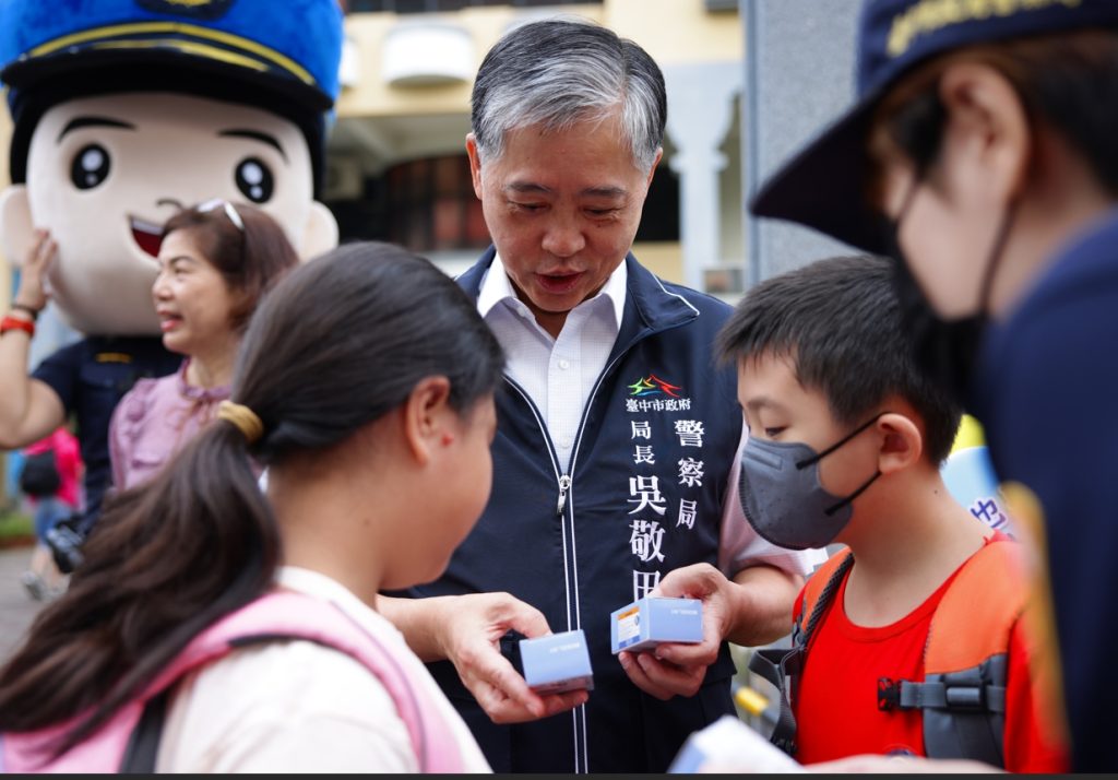 中市警局特別重視護童勤務,114年新學期開學首日一早由局長吳敬田率員前往北屯區僑孝國民小學執行護童勤務,並結合婦幼及交通安全宣導;另精心準備「小熊警報器」發送給學童,若遭遇陌生人騷擾或攻擊等緊急情況,可立即開啟警報器發出響亮聲音求助。學童們看到造型可愛又實用的警報器,直呼這是最棒的開學禮物。此外,中市警局副局長及督察長分別前往烏日區烏日國民小學及太平區中華國民小學,慰勉執勤員警辛勞。