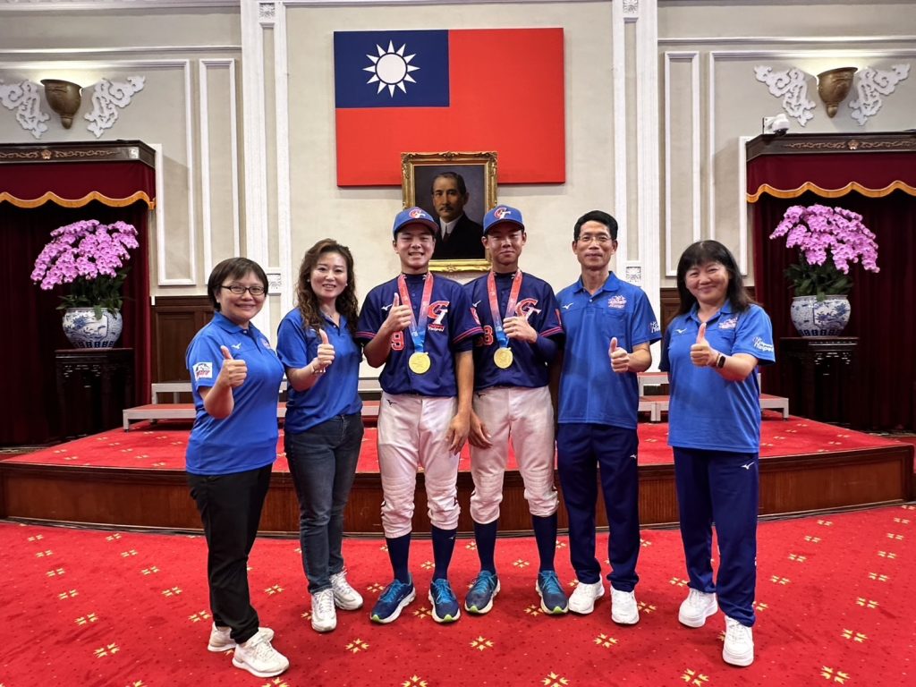 郭明洲副局長迎接英雄歸國並致上最誠摯的祝賀與敬意。他表示,中山國中棒球隊先在「萬士益冷氣盃」奪冠後,後於LLB亞太區賽事封王,再度代表台灣出征「2025 世界少棒聯盟(LLB)世界次青少棒錦標賽」;而由中山、向上、西苑及豐陽國中組成的台中市青少棒代表隊,在「陽信銀行盃」摘金,接續代表我國參加「2025 PONY小馬級亞太區青少棒錦標賽」勇奪冠軍,取得世界賽代表權,兩項賽事雙雙取得世界冠軍金盃,實屬難能可貴,充分展現台中青少棒的高水準實力與堅韌鬥志,讓全世界看見台中的力量,更讓全體市民與有榮焉。