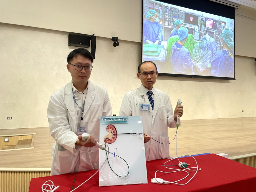患者表示多年來反覆受到腎結石困擾,年輕時曾接受四次相關治療。半年前結石再度復發,因擔心手術需暫停服用抗凝血藥物可能增加中風風險,曾嘗試以其他治療方式排石,未料卻發生急性發炎,險些危及生命。謝主任強調,對於高齡且合併多重慢性病史的患者,「微創雙鏡聯合手術」結合經皮腎造廔與軟式輸尿管鏡技術,具備傷口小、出血少、手術時間短、麻醉風險低等優勢;同時可擴大碎石範圍,提高結石清除率,並透過雙鞘引流降低術後感染與敗血症風險,是複雜型腎結石的安全有效選擇。
