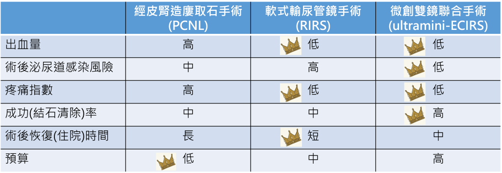 謝博帆主任指出,患者過去有中風病史,且結石數量多、腎臟曾接受多次手術,屬高度複雜個案。若採傳統經皮腎造廔取石手術,需於背部劃開約2公分傷口,出血風險較高,亦可能造成氣胸、血胸或鄰近器官損傷。經與家屬充分討論後,決定改採微創雙鏡聯合手術,僅需於背部原先腎造廔管約0.5公分的小洞口置入腎臟鞘,並搭配軟式輸尿管鏡,由謝博帆主任與李宗叡醫師同步操作,從不同方向夾擊結石,透過雷射碎石並即時取出,大幅提升效率與安全性。最終於單次手術中清除大部分結石,術後恢復良好。