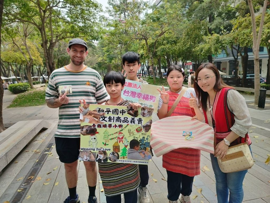 中市和平國中推動泰雅文化實驗教育,學生體驗傳統編織技藝,並產出文創商品,賦予傳統文化具體的新意義。今(28)日穿著泰雅族服的學生,前往草悟道市民廣場義賣文創作品,同時推廣全民原教。活動結束時義賣所得全數捐贈予社團法人台灣幸福狗流浪中途協會,以實際行動關懷流浪動物,將學習成果與公益行動結合。