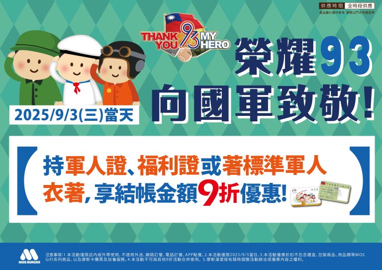 摩斯漢堡開學超值省 暢銷飲品加十元多一杯 九三軍人節全品項9折
